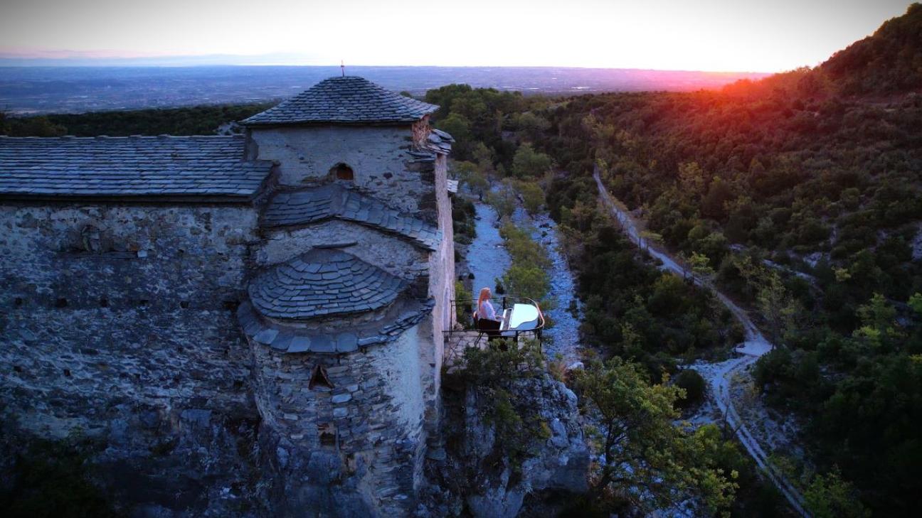 Στον μυθικό Όλυμπο, εκεί όπου ο ουρανός συναντά τη γη, στέκει εδώ και αιώνες το εκκλησάκι της Αγίας Τριάδας, στην άκρη του βράχου. Για πρώτη φορά, ο χώρος αυτός μεταμορφώνεται σε μουσική σκηνή για πιάνο.