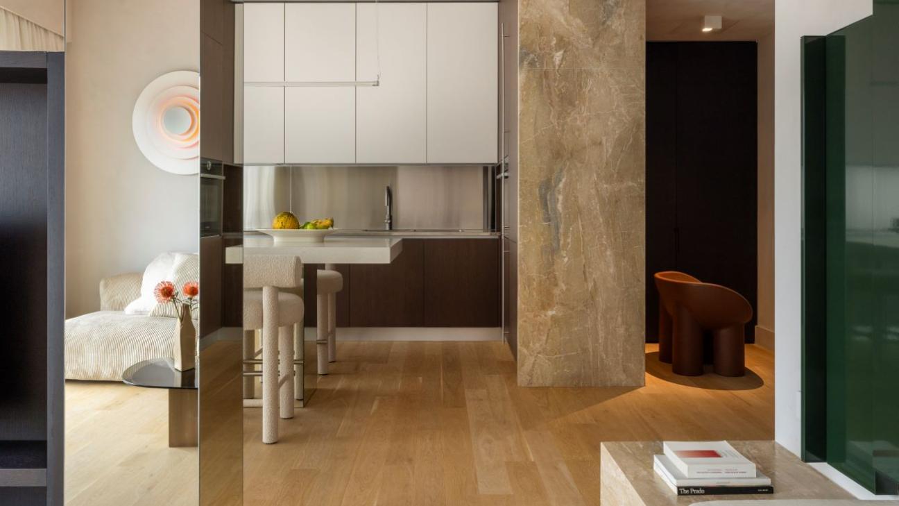 Στην πλατεία Μαβίλη, οι Kapsimalis Architects ανακαίνισαν ένα σπίτι 100 τ.μ. στον 6ο όροφο μιας πολυκατοικίας της δεκαετίας του ’60, μεταμορφώνοντάς το σε έναν χώρο που ισορροπεί ανάμεσα στην ενέργεια της πόλης και την ηρεμία, προσφέροντας ταυτόχρονα απρόσκοπτη θέα στον Υμηττό.